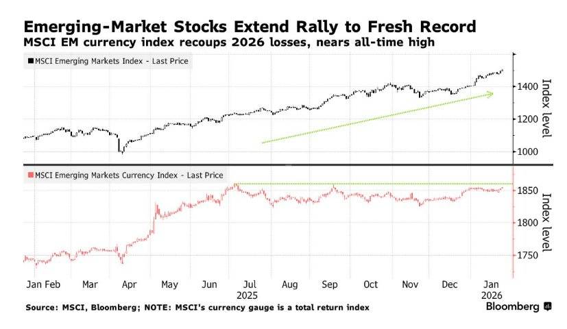 凤凰体育,凤凰体育直播,凤凰体育APP智通财经APP获悉,以亚洲新兴股市为核心的全球新兴市场股票,以及新兴市场主权货币、黄金与白银等国际贵金属资产延续了2025年末以及2026年开年以来的无比强劲涨势。随着美国与包括欧洲传统盟友在内的多国主权政府之间的日益紧张关系对美元资产造成重大抛售压力,新一波“抛售美国”浪潮,可谓彻底激活全球范围内的多元化资金流动并且重新点燃全球多元资产配置趋势。